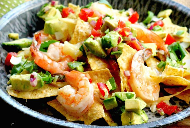 Contemporary and Tacky Nachos with Shrimp and Avocado