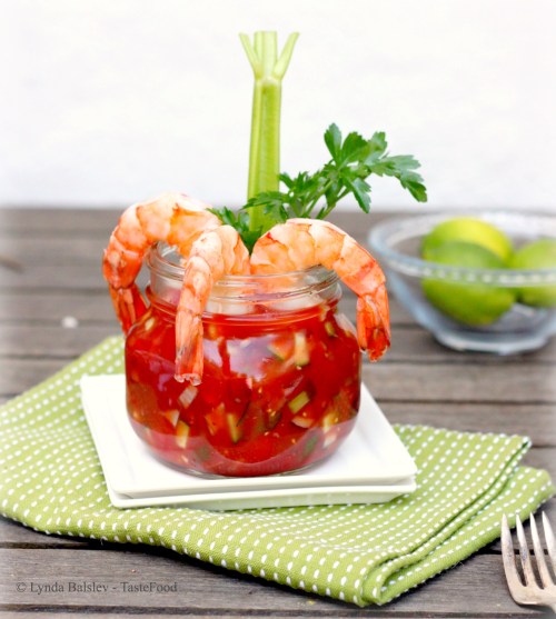 Bloody Mary Gazpacho with Shrimp