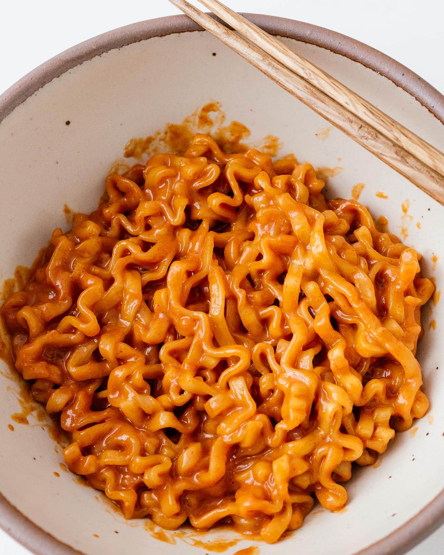 I really like instantaneous ramen. I find it irresistible rather a lot. However I positively don’t find it irresistible as a lot as that little lady who cried tears of pleasure when she acquired a 5 pack of spicy buldak carbonara for her birthday. She was so extremely glad and grateful and it simply warmed my coronary heart. It additionally made me marvel, how on earth is her spice tolerance so excessive? As a result of although buldak carbonara isn’t as spicy because the common sizzling rooster buldak, it’s nonetheless fairly darn spicy!