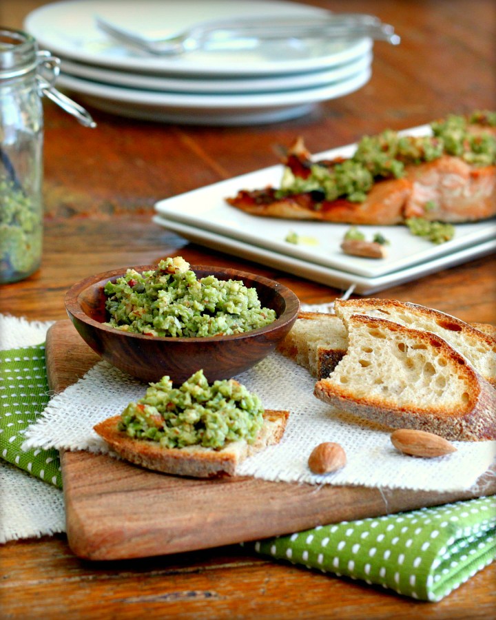 Condiment Highlight: Inexperienced Olive Tapenade (with Oven Roasted Salmon)
