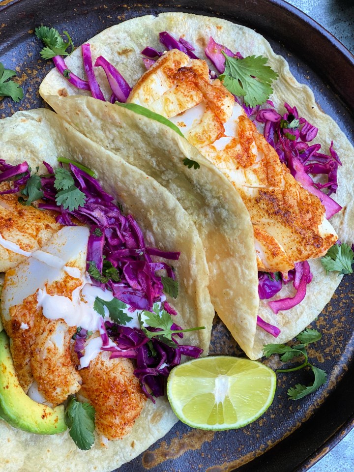 6. To assemble, place 2 to three strips of fish on a heat tortilla. Prime with a number of the slaw and drizzle with the crema. Serve with avocado, further cilantro, lime wedges, and salsa fresca (if utilizing)