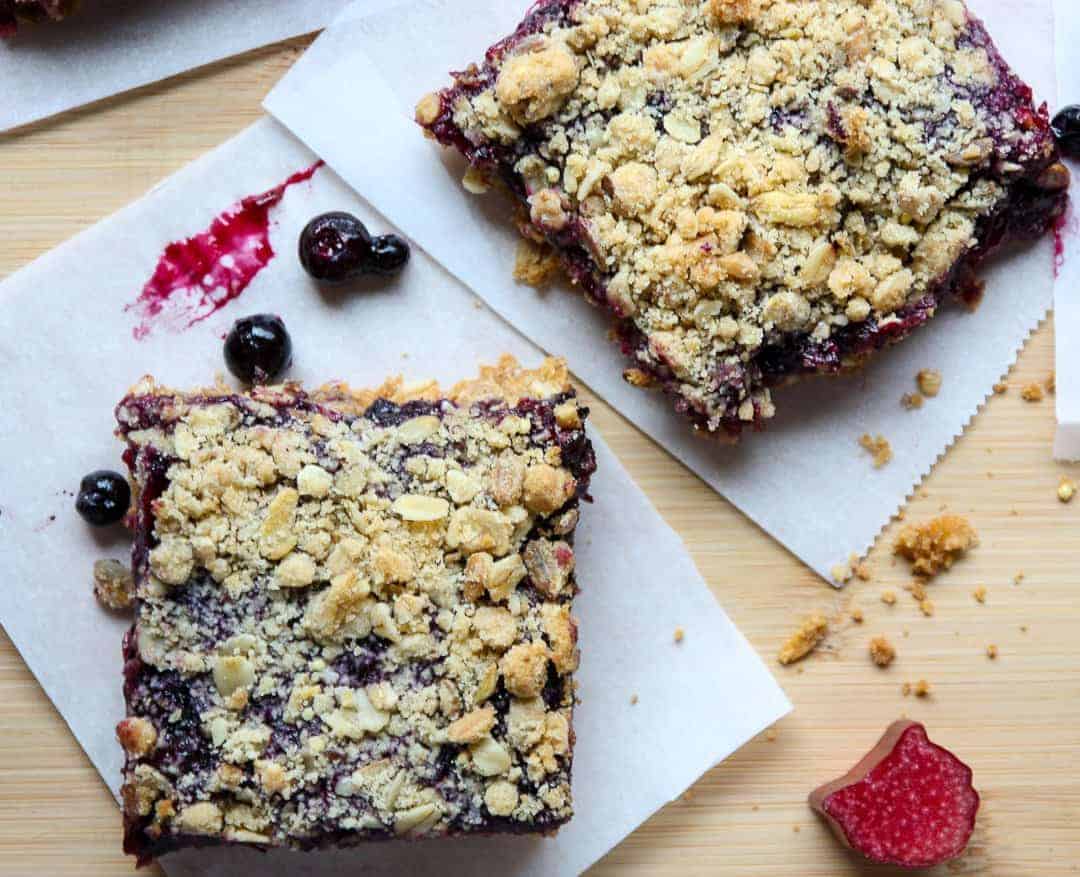 Can we name these rhubarb blueberry oatmeal bars semi-healthy? Sure, there’s butter and sugar. However they are made with fruit, and there are oats in there, too. However who am I fooling? These are a deal with, little question about it. A scrumptious deal with of blueberry rhubarb goodness between buttery oatmeal crispness. And all of us want a deal with typically. Life is about steadiness, and treats are a part of that.