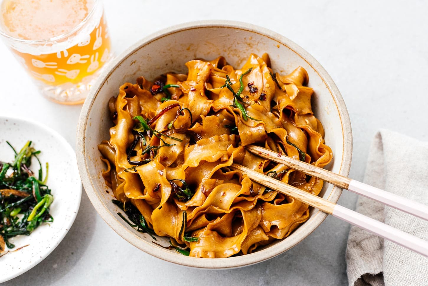 Right here I’m utilizing knife minimize Chinese language shanxi planed ribbon noodles or dao xiao mian (刀削面). They promote them at Asian grocery shops or you should buy them on-line. They’re primarily a wheat noodle with frilly edges which have a splendidly silky chewy texture that holds up effectively to sauce.