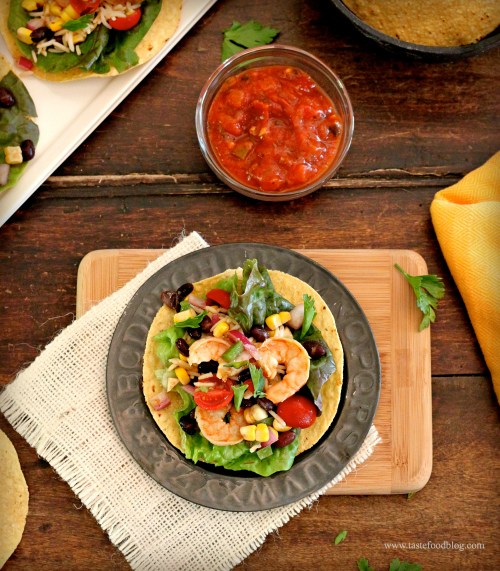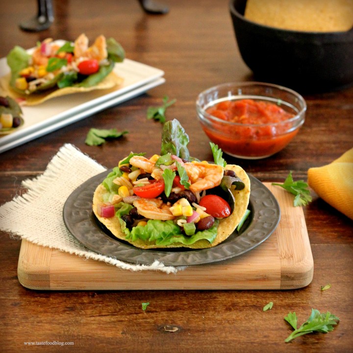 To assemble tostadas, lay a lettuce leaf over the corn shell. Spoon rice and black bean salsa over the lettuce. Prime with 2 to three shrimp. Spoon tomato salsa over. Garnish with avocado slices and contemporary cilantro. Squeeze a number of drops of lime juice over every tostada. Serve instantly and cross the napkins.