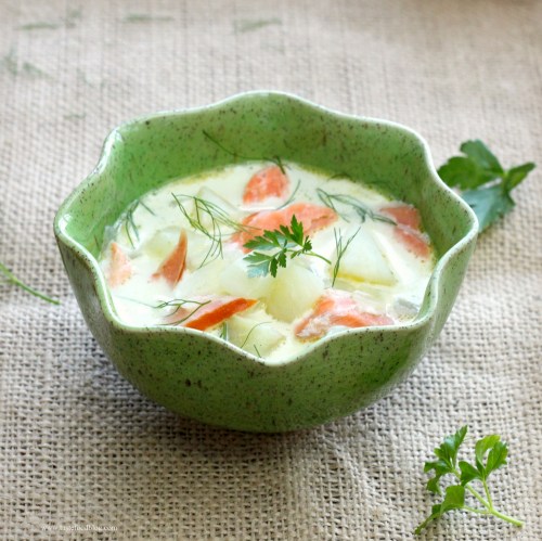 Whereas many of the nation suffers by means of a warmth wave, San Francisco is having fun with a typical Bay space summer time, blanketed in misty fog which retains the temperatures chilly. The skies brighten by mid-day, however the air stays contemporary with wind blowing in from the Pacific. I name this chowder climate, and switch to my favourite recipe. I prefer to make chowder with quite a lot of thick-fleshed fish, however all the time embrace a portion of smoked salmon so as to add an additional layer of heat in taste. On this recipe, smoky wealthy salmon swims in a creamy broth infused with the fragile whiff of anise from fennel. Its heat, salty, and smoky, transporting me to the seaside. All that’s lacking are the cries of seagulls and the distant sound of clanging bouys.
